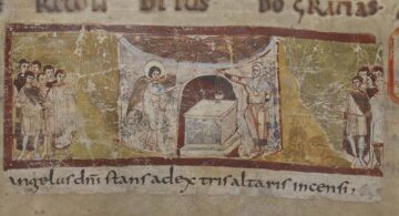 9th-Century Carolingian Illumination of Zechariah and the Angel Gabriel